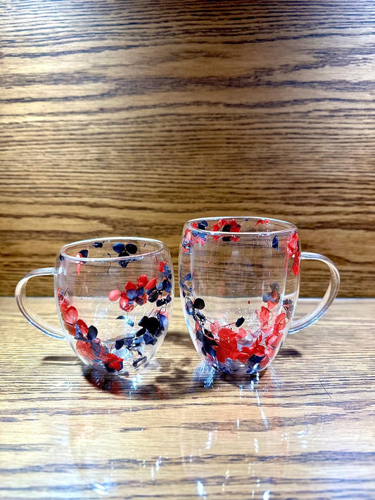 DOUBLE WALL GLASS COFFEE MUGS FLOWER PATTER 350 ML