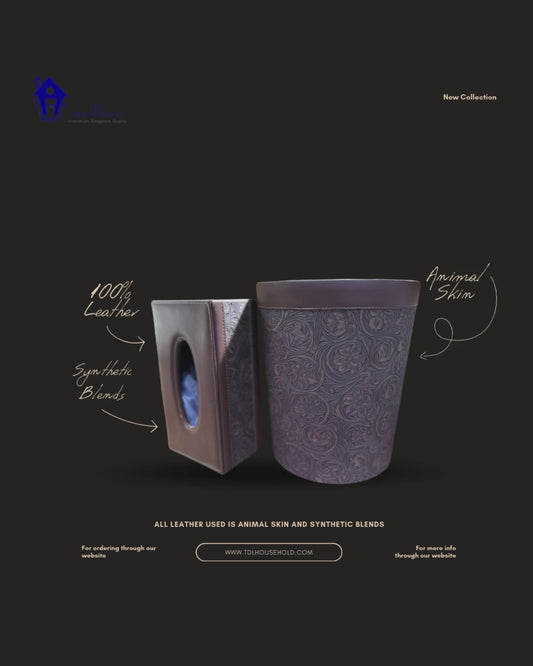Elegant Faux Leather Tissue & Dustbin Set