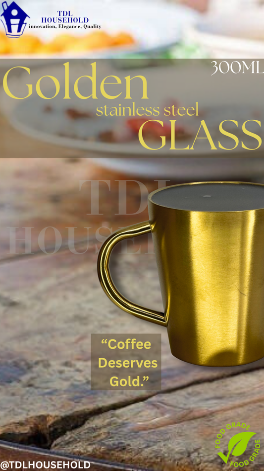 Golden Double Wall Coffee Mug Material Stainless Steel Color Gold Capacity 10.1 ounces Special Feature Heat Insulation