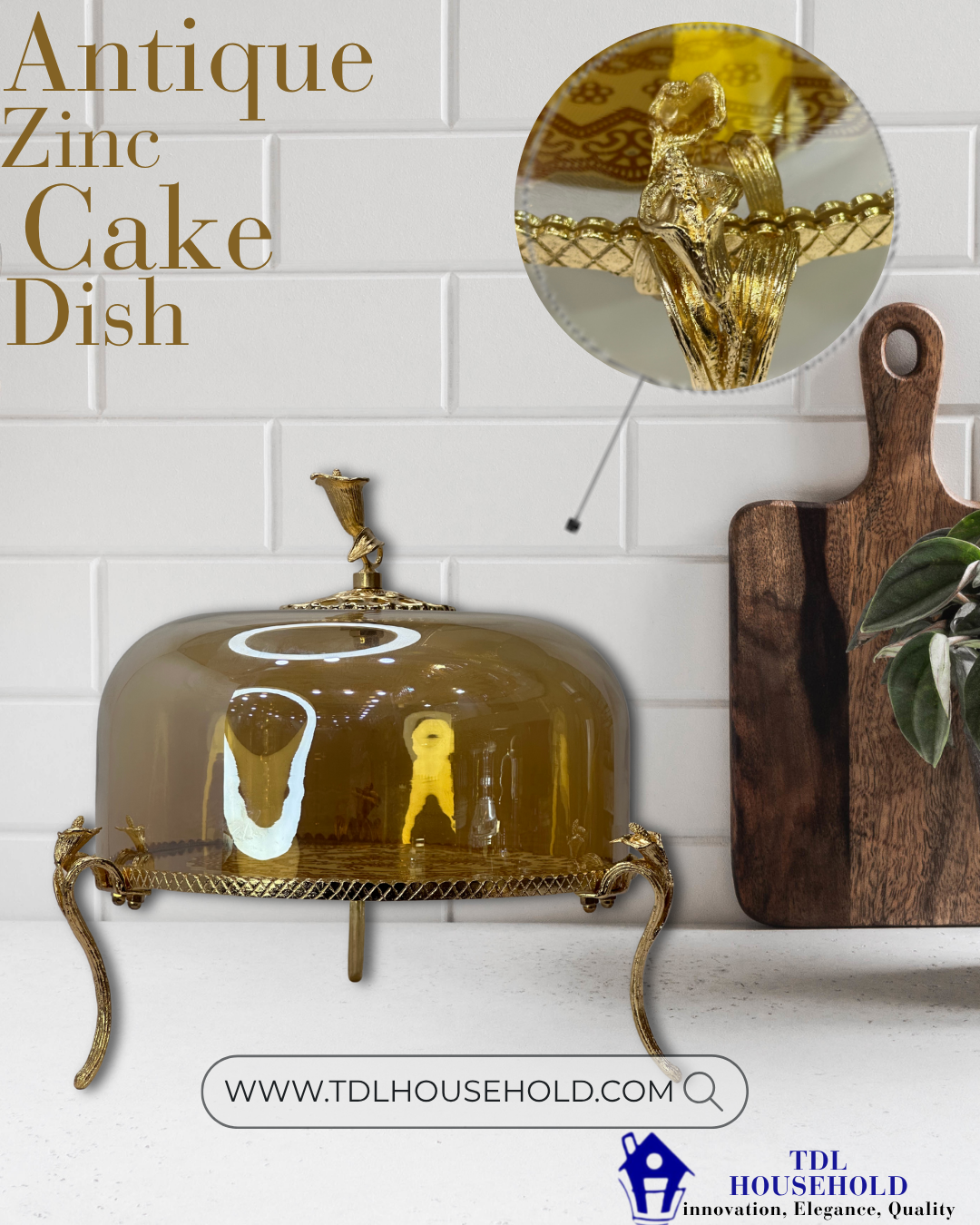 Crafted from durable zinc alloy and finished in a radiant gold, this elegant cake dish brings luxury and charm to any celebration. Its sturdy build supports layered cakes and desserts with grace, while the intricate detailing makes it a true showpiece. Perfect for weddings, birthdays, or upscale gatherings, it’s not just a serving dish—it’s a statement of style.