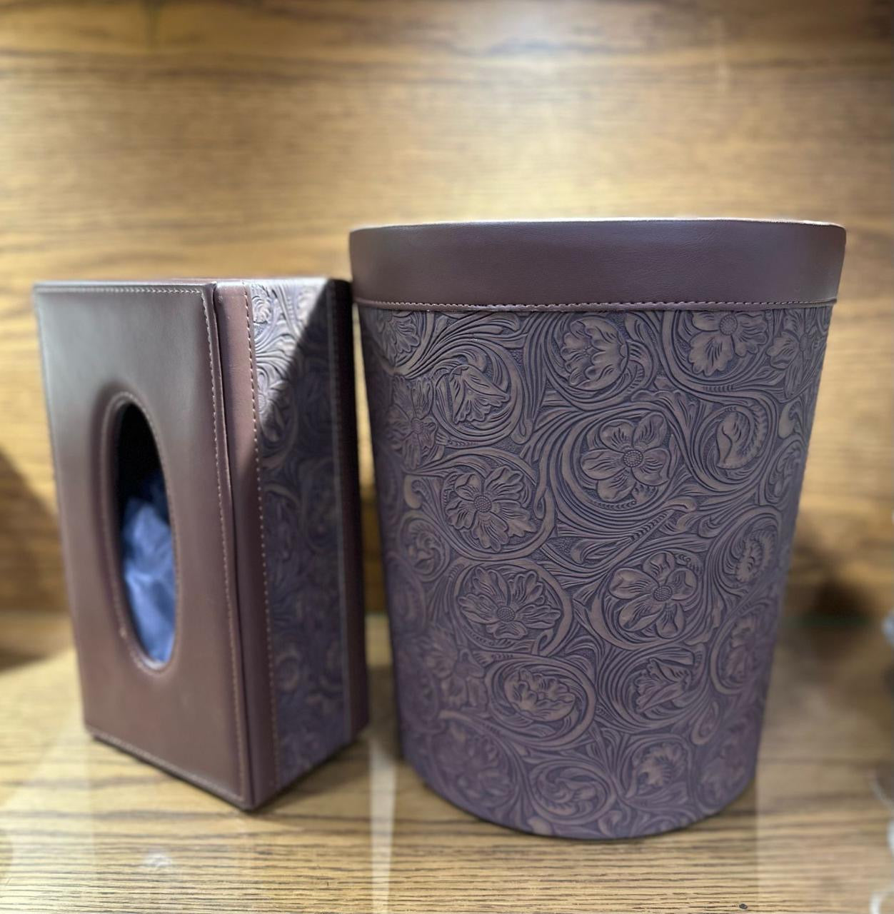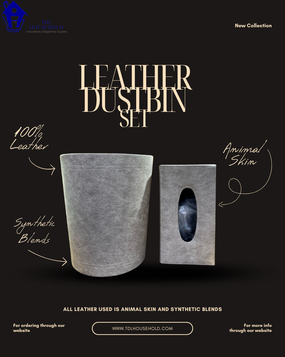 Enhance your space with this sophisticated faux leather tissue and dustbin set, designed for both style and function. Featuring a sleek grey suede-textured finish, the cylindrical waste bin pairs perfectly with the matching rectangular tissue box holder. Ideal for offices, bedrooms, or living areas, this duo adds a touch of modern elegance while keeping your environment tidy and organized.