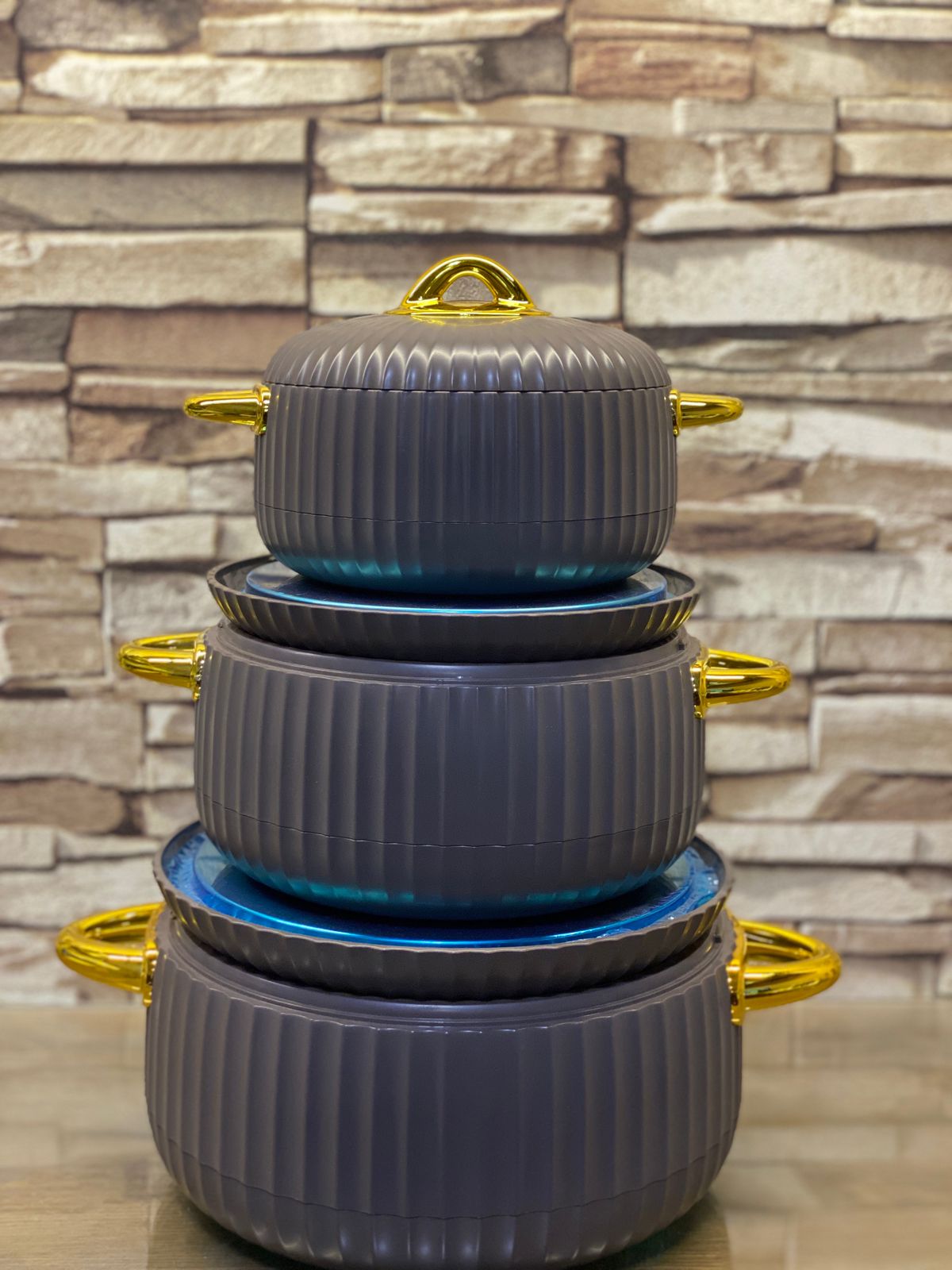 Expertly crafted for the best dining experience, this Food Warmer Hotpot Set features a sleek white and gold design. Keep your food warm and stylishly displayed with this set of three, perfect for gatherings and everyday use. Elevate your meals with this must-have set.