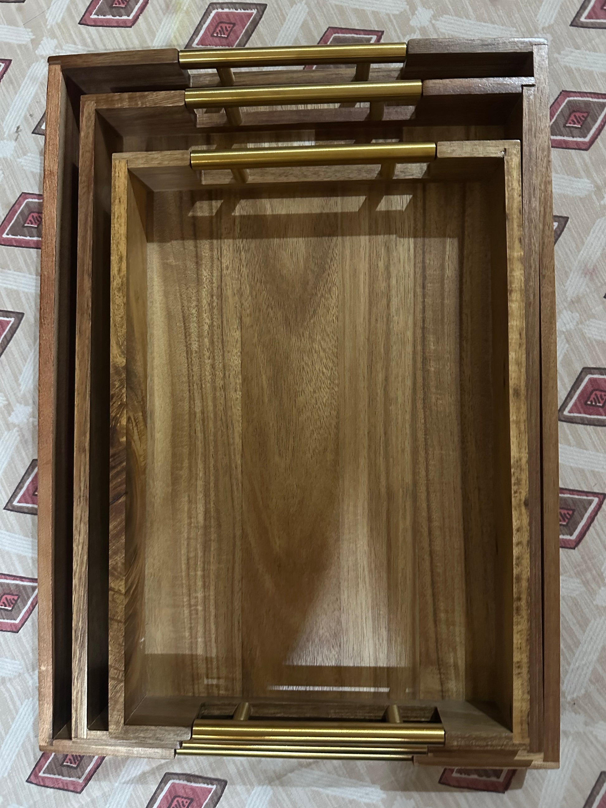- Elegant Wooden Gold Aesthetics: The Wooden Gold Serving Tray Set boasts a sophisticated and luxurious golden finish, adding an elegant touch to your serving experience.